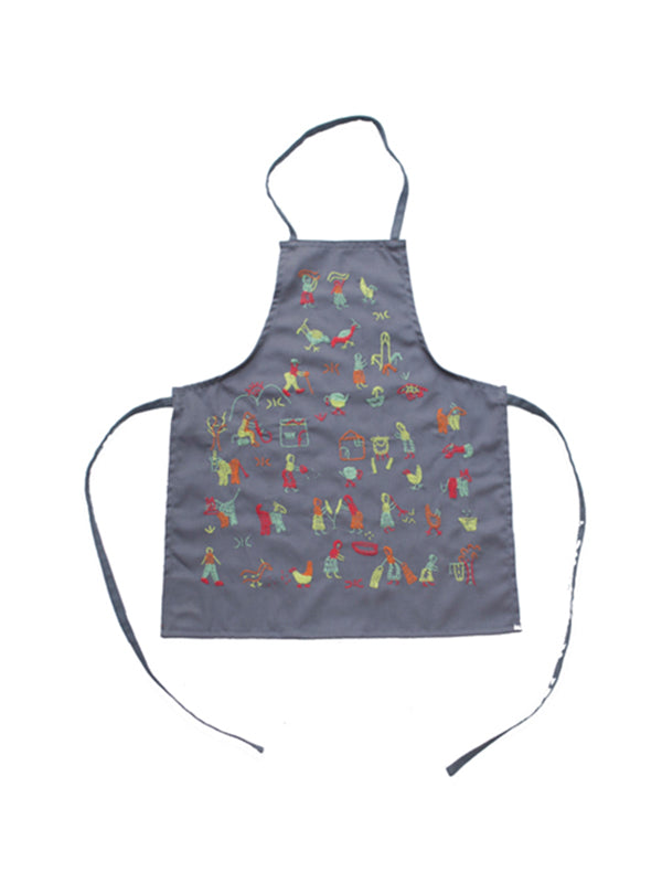 Penduka's Village Story embroidered kids aprons are made by women in rural Namibia. Each cotton children's apron tells the story of one woman, her experiences and her problems, through needle and thread. This means that each apron is unique and will vary on what the embroiderer has to tell. Motifs include everyday village scenes, fetching water and Katutura street scenes. Made from 100% cotton, the hand embroidered apron is perfect for small kitchen helpers and lovers of craft. They also make a wonderful gift.