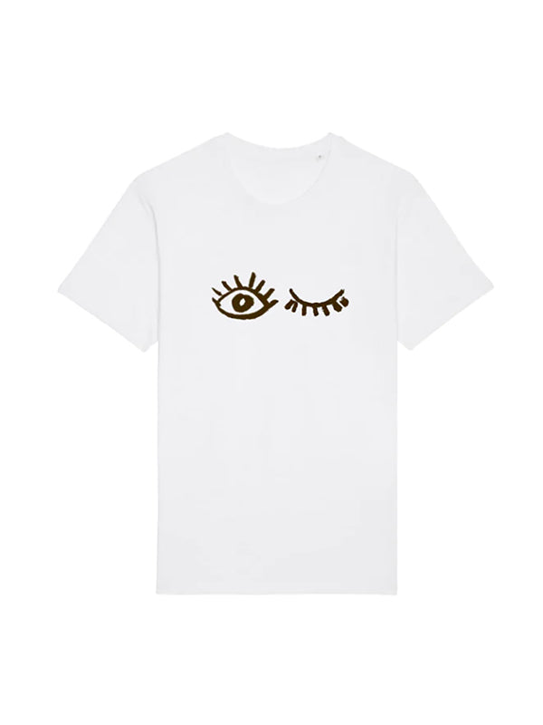 Origin Africa's best-selling Wink Tee! The icons on this t-shirt were inspired by African hand carved masks. All Origin Africa's sustainable tees are 100% organic cotton and printed using vegan approved water-based dyes.